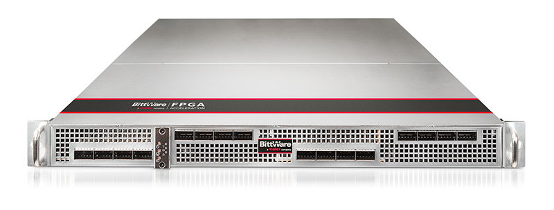 With four double-width cards per rack unit, the TeraBox 1400B from BittWare (Concord, NH) has twice the density of a 4U/8-card server, plus a better CPU-to-card ratio of 2:1 versus 4:1 (for dual-socket servers). Choice of FPGA card includes the XUP-VV8 (Xilinx UltraScale+ VU13P), 520N-MX(Intel Stratix 10 MX with HBM2), and S7t-VG6 (Achronix Speedster7t). The custom-designed server features four full-size FPGA cards in a 1U chassis with front-panel access. The motherboard supports two Intel Xeon Scalable processors with 12× DIMMs per CPU, dual redundant power supplies, and enterprise-class build quality for datacenter deployment throughout. Using the XUP-VV8 you can have up to 32× 100G links or 128× 10/25G links (using breakout cables) from the front panel.