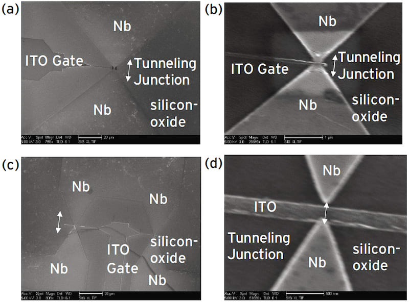 Certain applications require the ability to gate the active region and use multi-terminal configurations. The previously designed heterostructures with the top niobium electrode have a problem with this as their optical gating limits access to the active junction region. A layout was created for the construction of lateral devices where tunneling can occur. That led to a modified layout based on microwave integrated circuit ground-signal-ground layouts used for radio frequency (RF) electronics. The active region was modified to act as a tunneling junction. As for the tunneling junction, structures were produced that have a “closed” but constricted gap at or near the coherence length for niobium to behave as a weak-link and where functional materials can readily be integrated in the tunneling region.