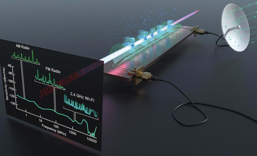 Army researchers built the quantum sensor, which can sample the radio-frequency spectrum — from zero frequency up to 20 GHz — and detect AM and FM radio, Bluetooth, Wi-Fi, and other communication signals.