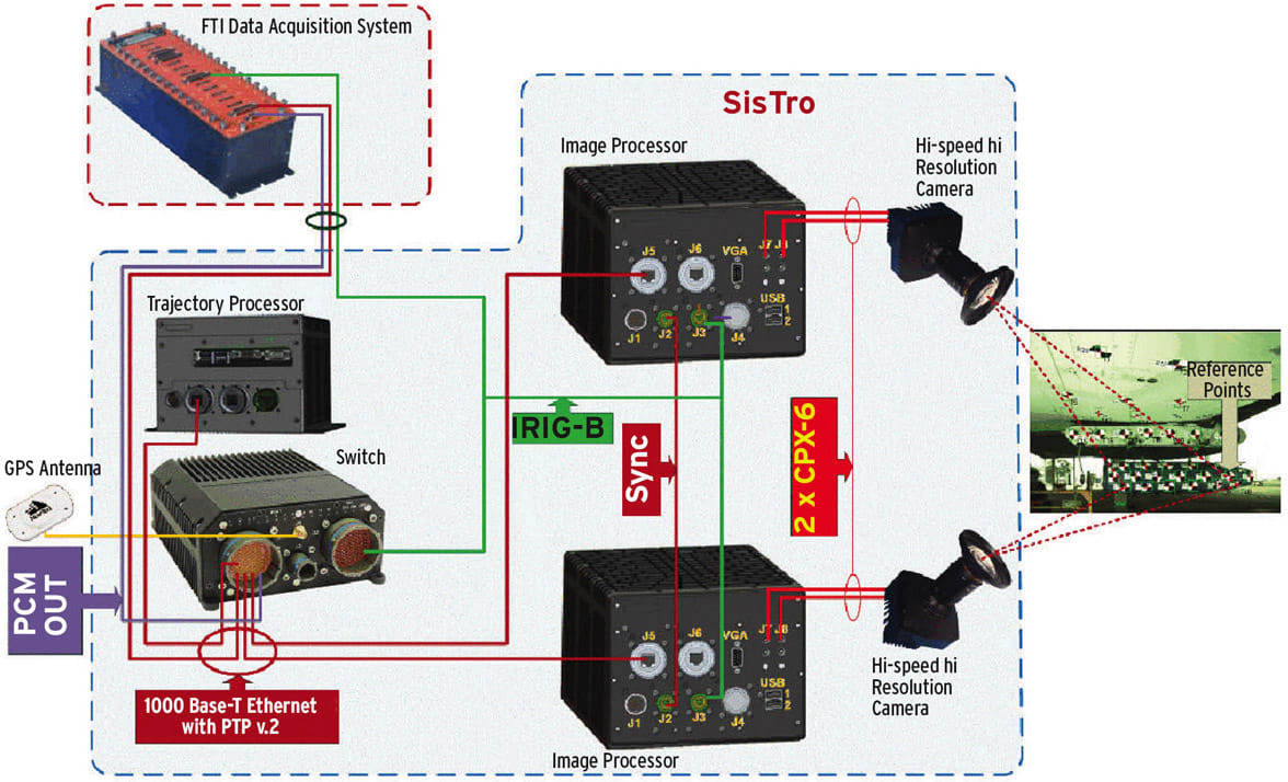 A scientific bibliographic and COTS product survey has shown that SisTrO is the world’s first system that can compute in real time the six degrees of freedom (6DoF) trajectory of the released store. The required bandwidth for SisTrO (or any similar system) real-time high-speed, high-resolution video frame data transmission is far above the capability of a typical Gigabit Ethernet connection. After experimenting with various solutions, IPEV found the one proposed by ADL Embedded Solutions to be the optimal solution for matching all SisTrO development system requirements.