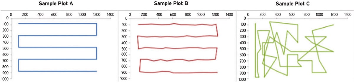 Among the rich variables that are collected in eye tracking data, one that centers on the temporal aspects of fixation patterns but whose analysis is frequently neglected due to its complexity, is the scanpath. A scanpath is defined by the temporal sequence of point-by-point (x,y) screen coordinates of where a person is looking on the screen. The accompanying figure shows three example notional scanpaths, although the temporal direction is not shown. At a minimum, scanpaths encompass at least one full fixation-saccade-fixation sequence. Clearly, scanpaths capture the fixation, re-fixation, and backtrack patterns that reveal an analyst's attention, conscious or otherwise.