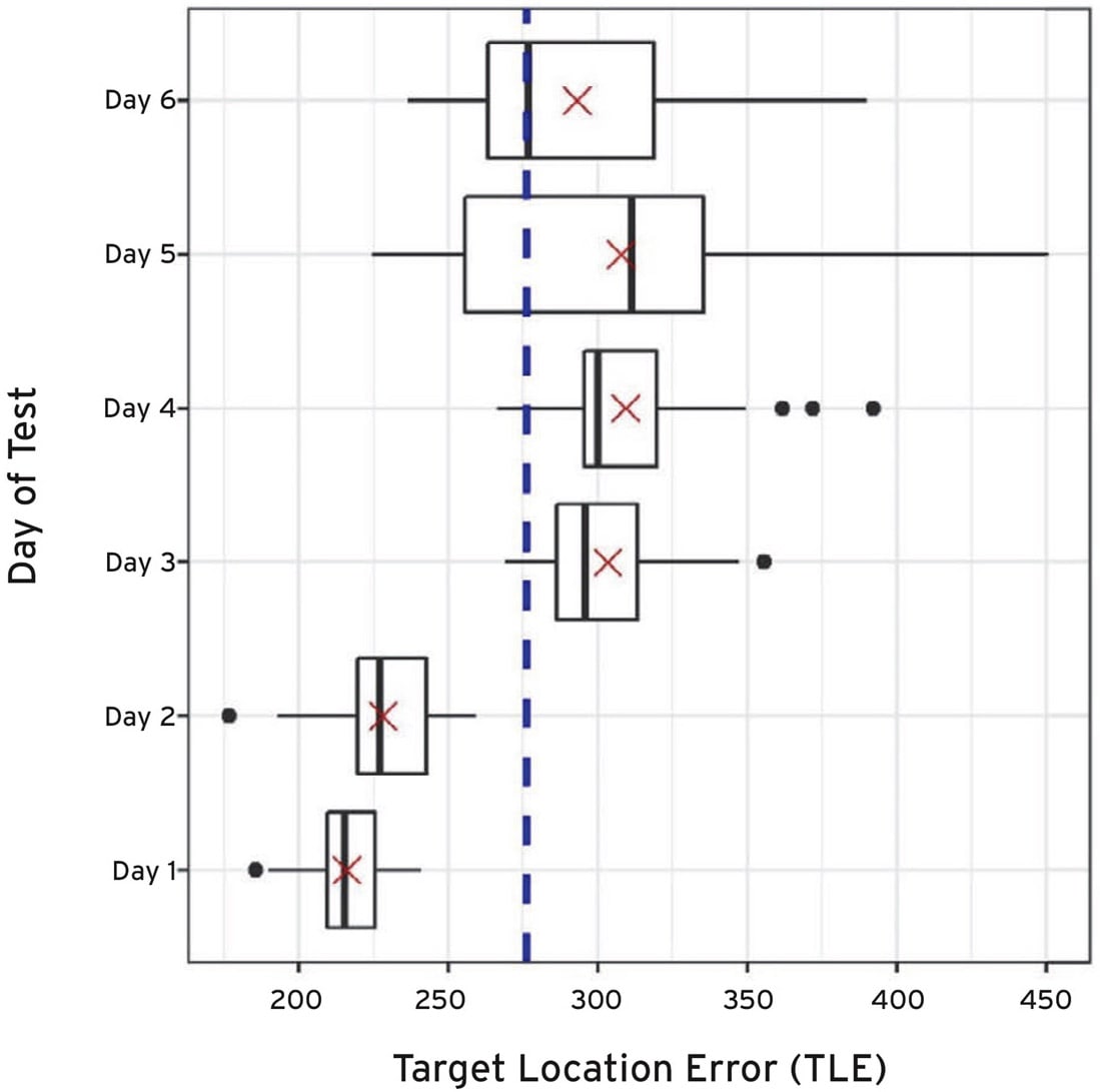 The accompanying figure shows the day-to-day variation of TLE. It is clear single days are grouped. For example, the conditions on days 1 and 2 seem to have provided the best set of environmental factors for the UAV’s radar system. Ignoring the day-to-day variability could cause wrong conclusions to be made about the system’s performance.
