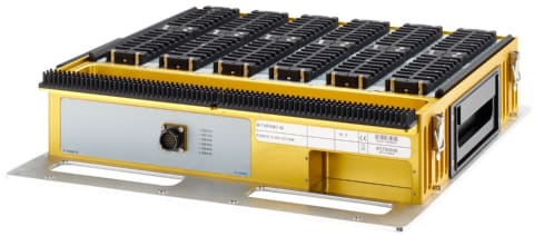 CesiumAstro (Austin, TX) announced the release of the flight-ready SDR-1001 credit-card-sized modular software-defined radio (SDR) for commercial, government and defense applications, tested to NASA GEVS standards and available in volume. Featuring 4 TX and 4 RX channels tunable from 300 MHz to 6 GHz, the SDR-1001 ships with a default BPSK/QPSK modem and optional FPGA Developer Toolkit enabling custom waveform development. Designed to meet the demanding requirements for launch, as well as the extreme conditions of space and airborne environments, the SDR-1001 integrates a flexible RF front-end with high-performance FPGA to support a 5-to-7-year mission duration. Mil-Spec connectors provide access to RF signals and enable both SpaceWire and Ethernet connectivity.