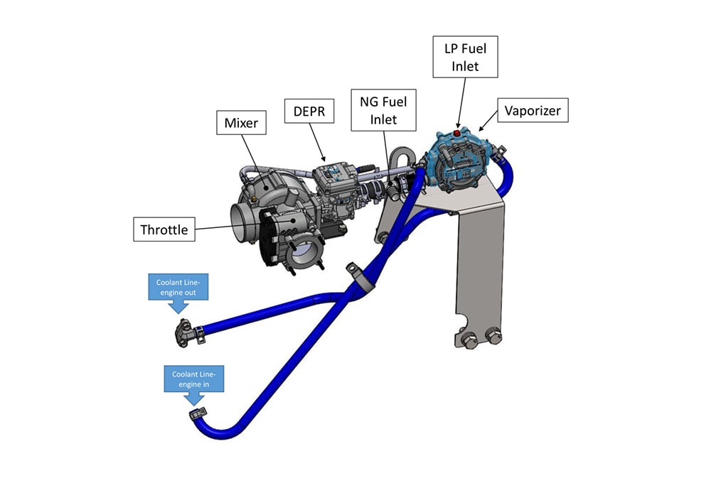 Software command lets users switch from natural gas to liquid propane by merely sending a signal to the engine.