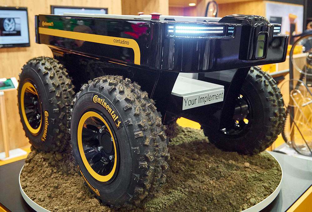 An agricultural robot concept, the Continental Contadino, also employs the HFL110 sensor. Introduced at Agritechnica, the fully electric and autonomous Contadino features a modular design that allows exchangeable implements and different track widths. The implement carrier can be used for different light-duty tasks such as seeding, weeding, spraying, fertilizing and monitoring. Smart farming is possible with precise application of pesticides and fertilizers or a selective sowing process.