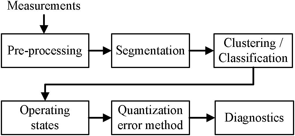 Forty-one different operating states were found from the measurement data using the sliding window method with piecewise linear regression for time series segmentation and the k-means algorithm for the clustering and classification of the pre-processed segments.