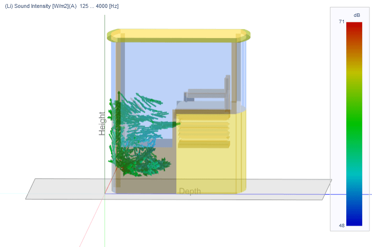Because the door was closed, the rubber seal shielded the door from the outside noise, reducing the maximum levels by 5 dB. However, there were still some leaks at the top corner of the door closure. Soundbrush was used to further investigate those leaks and try to optimize the closure and the rubber seal.