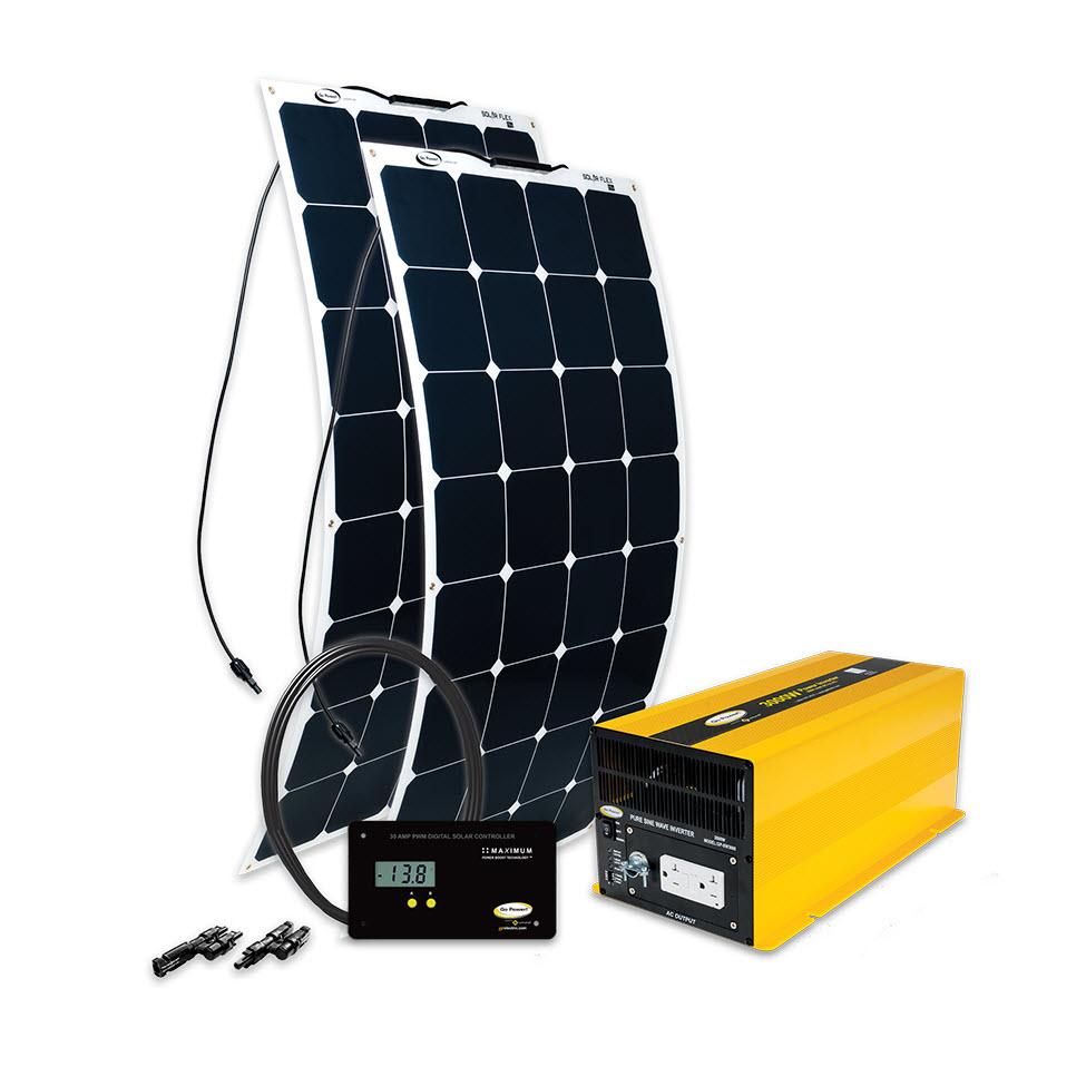 Solar Flex GP-FLEX series panels from Go Power use monocrystalline cells to increase energy per square foot when powering tools, lighting, lift gates, and truck-mounted equipment. Aerodynamic, 3-mm (0.12-in) panels are clad in an impermeable, marine-grade laminate that can mount almost anywhere on a vehicle to metal, rubber, fiberglass, and plastic surfaces with fasteners or adhesives. Panels are durable to foot traffic and can be affixed to horizontal body surfaces. Available in 30-, 100-, and 200-W power kits for work trucks, vans, and utility vehicles, the work truck Solar Flex system can generate a battery-charging range of 1.7 A/h and prevents dead batteries for fleets while regenerating without idling, emissions, noise, and the variable cost of fuels.