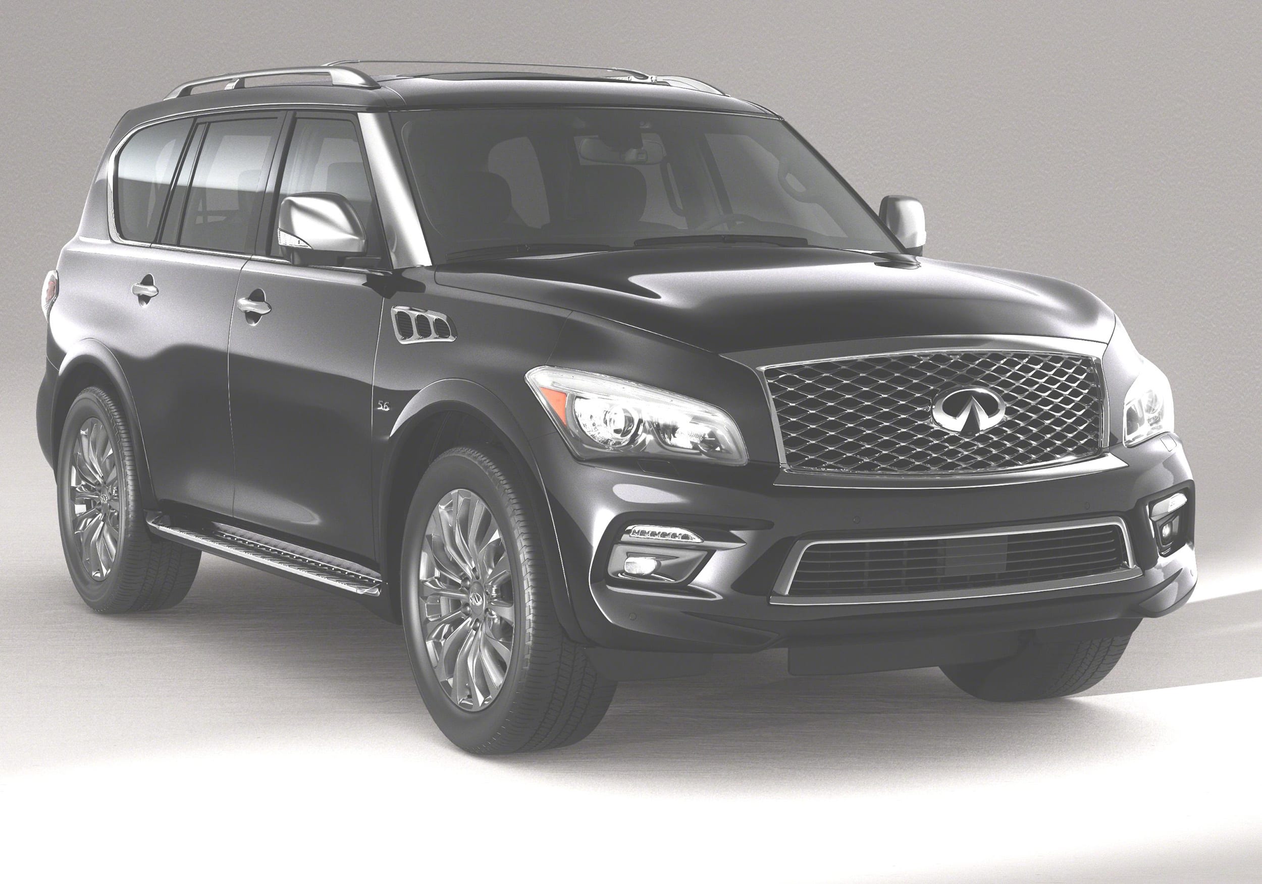 The new Infiniti QX80 Limited obviously is looking for conquest sales from the Cadillac Escalade and Mercedes-Benz GL-Class owners or prospects who've decided to consider something a bit different. Certainly the restyled 2015 model that Infiniti introduced at the 2014 New York International Auto Show, has definitely put the emphasis on luxury—in materials, finishing touches, and operating features. Based on a restyled QX80, the body-on-frame three-seat-row, seven-passenger SUV was compared by company spokesmen to an executive boardroom, but "not over the top."