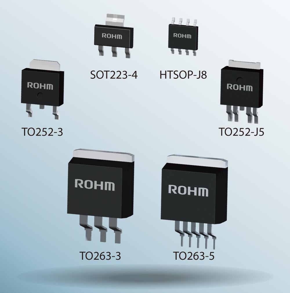 ROHM Semiconductor's new 16-model lineup of low-dropout regulators (LDOs) are optimized for MCU power supplies in automotive body and powertrain systems. The BD4xxMx series uses state-of-the-art power system 0.35µm BiC-DMOS processes and takes advantage of the company's analog design technology to achieve less than half the no-load current consumption of standard products, contributing to significant energy savings, ROHM says. In addition, novel circuit design enables support for ceramic capacitors, eliminating the need for electrolytic capacitors for oscillation prevention and thus reducing both mounting area and costs. In recent years as power supply ICs for automotive applications continue to increase in sophistication and functionality, there comes a greater need for an expanded lineup to cover a wide range of characteristics and application requirements instead of simply focusing on developing an all-in-one solution, according to ROHM. Its LDO lineup features various package types, form factors, output voltages, and currents.