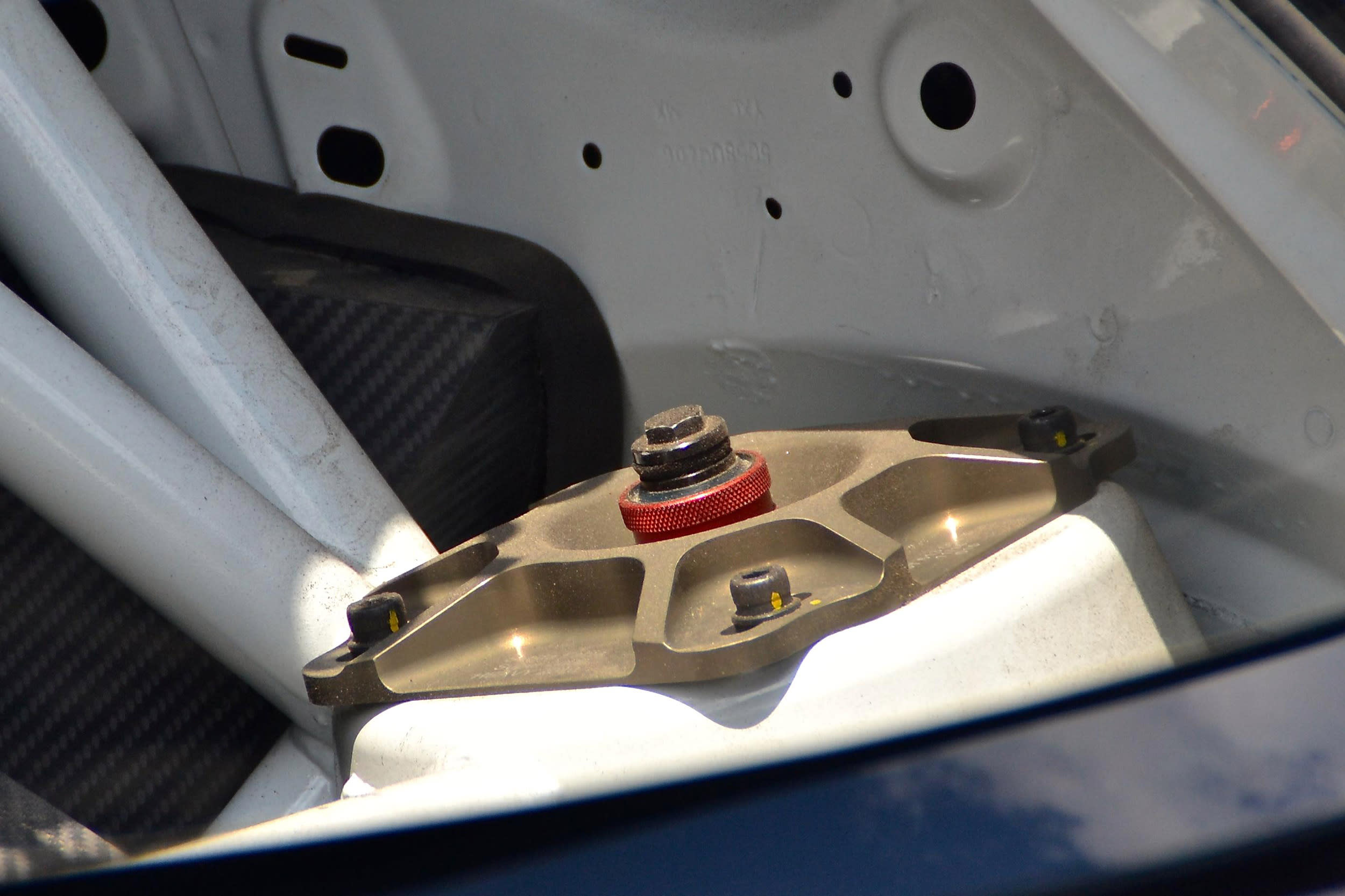 The race Beetle is built on the production car’s unibody and retains that car’s MacPherson strut suspension configuration front and rear. Naturally, the components are upgraded, with ZF Sachs dampers that have 9.1 in (231 mm) of wheel travel, and they mount to slotted camber plates to permit adjustability.