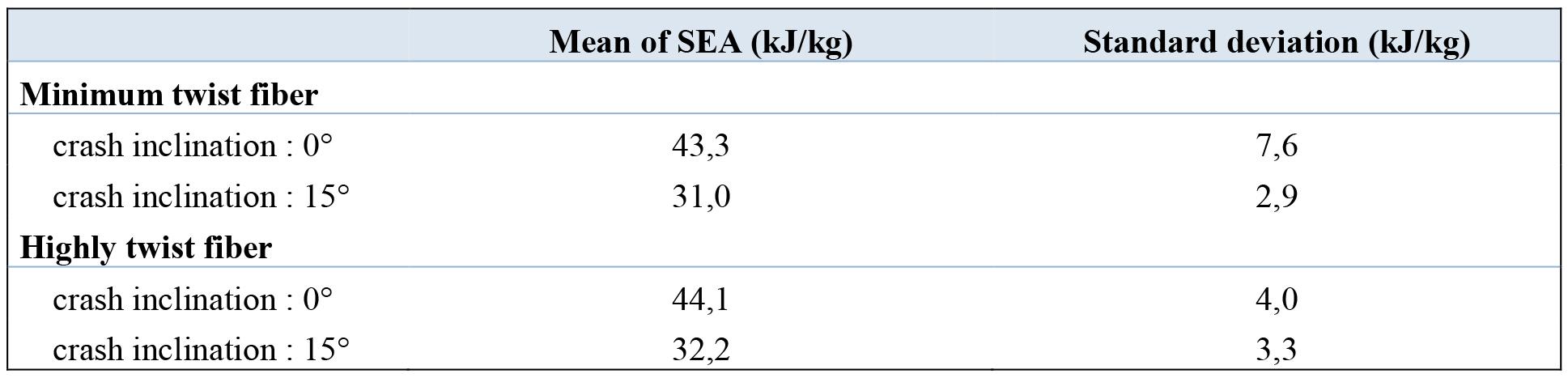 For process optimization matters, the influence of the fiber twist on crash performance of the composite has been examined. Fiber twisting may be useful to facilitate the textile process, but the impact to material performances needed to be reviewed. Concerning crashworthiness, it has been found that twisting does not influence the test results. Test on cylindrical weaved tubes have led to the same conclusion.