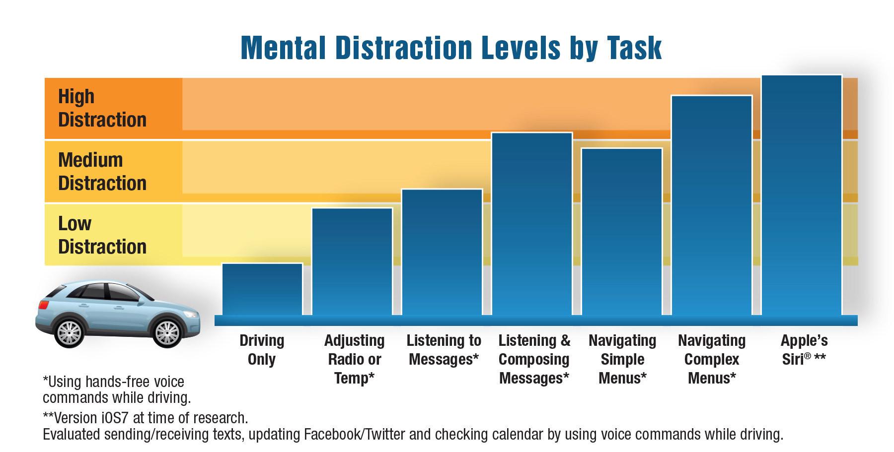- The accuracy of voice-recognition software significantly influences the rate of distraction. Systems with low accuracy and reliability generated a high level of distraction (3 on a scale of 1-5, with 5 being the highest level of distraction).