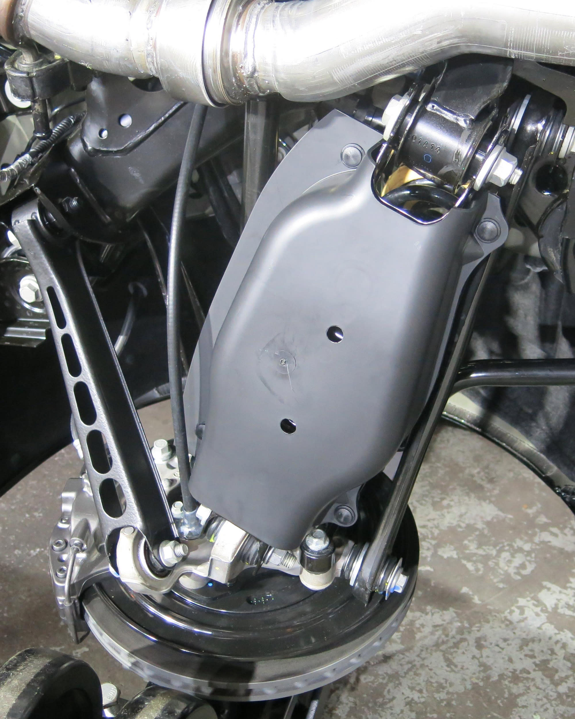 “It actually hurt us for ‘ped-pro,’ and we even looked at using a more compact centrifugal supercharger, rather than the TVS type, just to save a few millimeters of space,” but finally opted for the proven TVS unit, he said. And as an interesting attention to detail, all of the carbon-fiber panels are “book matched” to present a neatly aligned weave panel to panel.