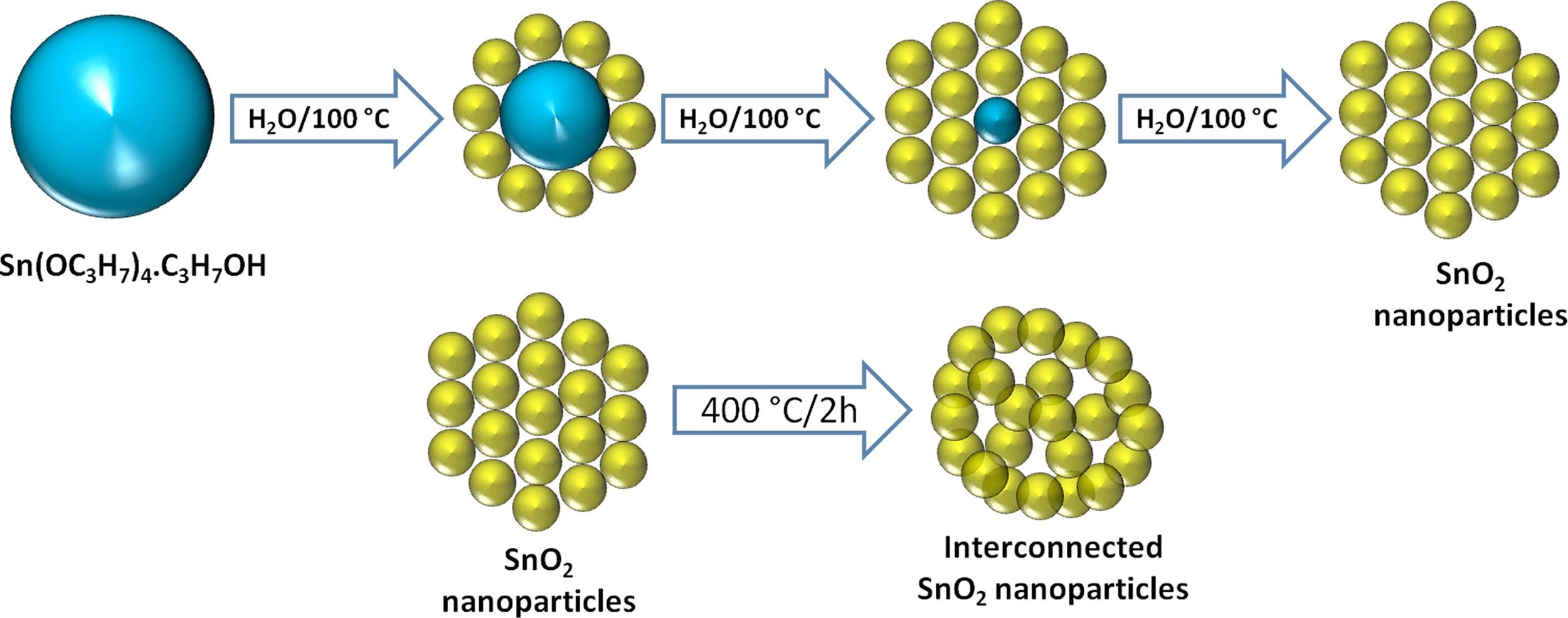 When tin oxide nanoparticles are heated at 400°C they self-assemble into a network containing pores that allow the material to expand and contract, or breathe, during the charge-discharge battery cycle.
