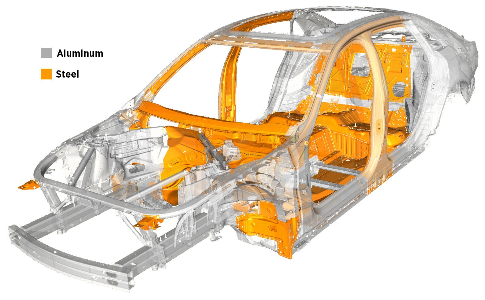 As a result, “alloy to steel, casting to extrusion..., the flexibility in joining and fastening opened up combinations which we normally could not have put together,” he continued. The free mixed-material design approach “let us use the best material in the best way in each location, integrating aluminum and steel where it makes sense.”