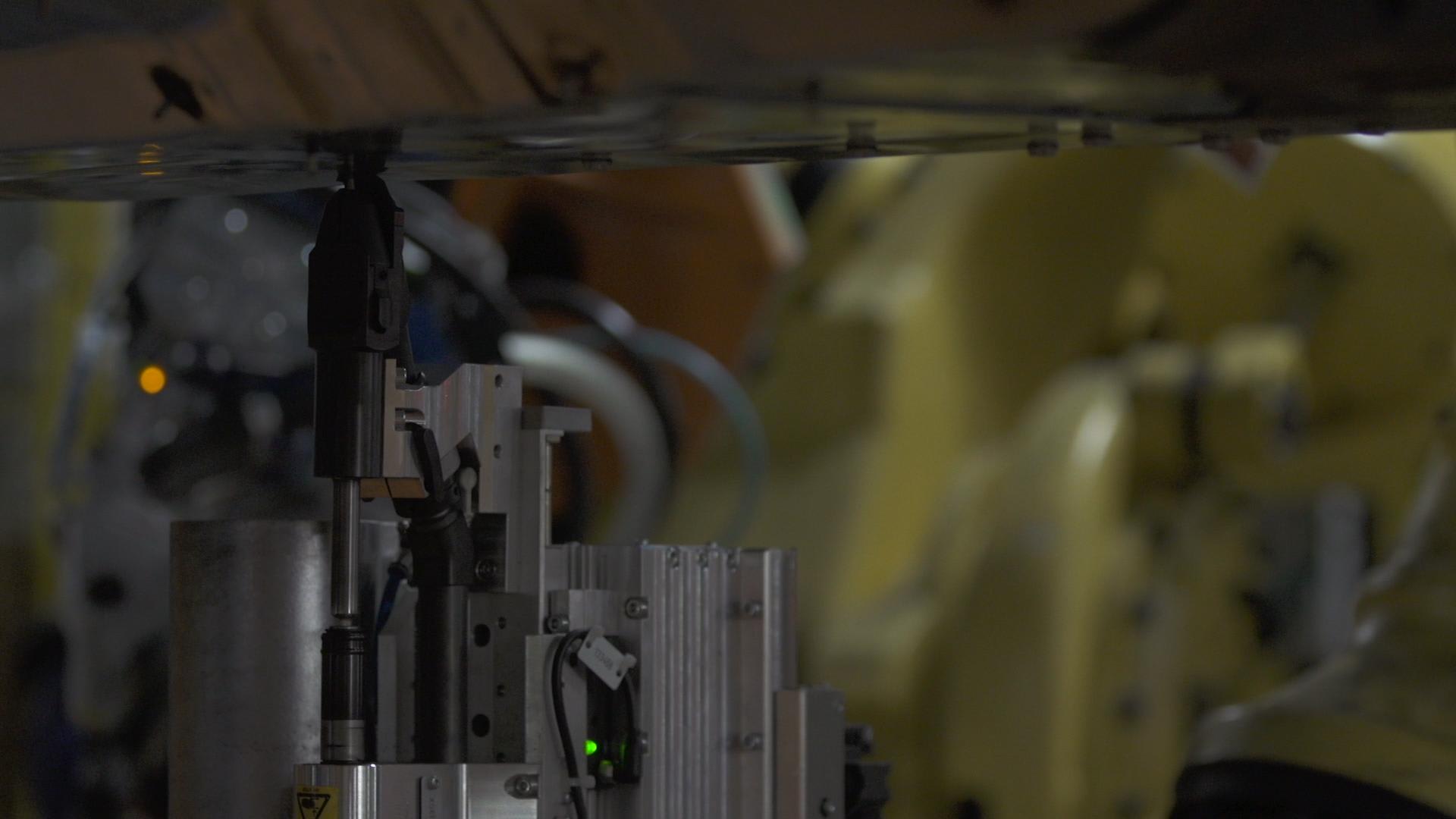 On the CT6 production line, 28 robots descend on the vehicle body in two separate framing stations to weld both the inner and outer vehicle frames, simultaneously joining the body-in-white together from all angles. As the choreographed robot arms move in, out, and around the vehicle in concert, they resemble a symphony orchestra.