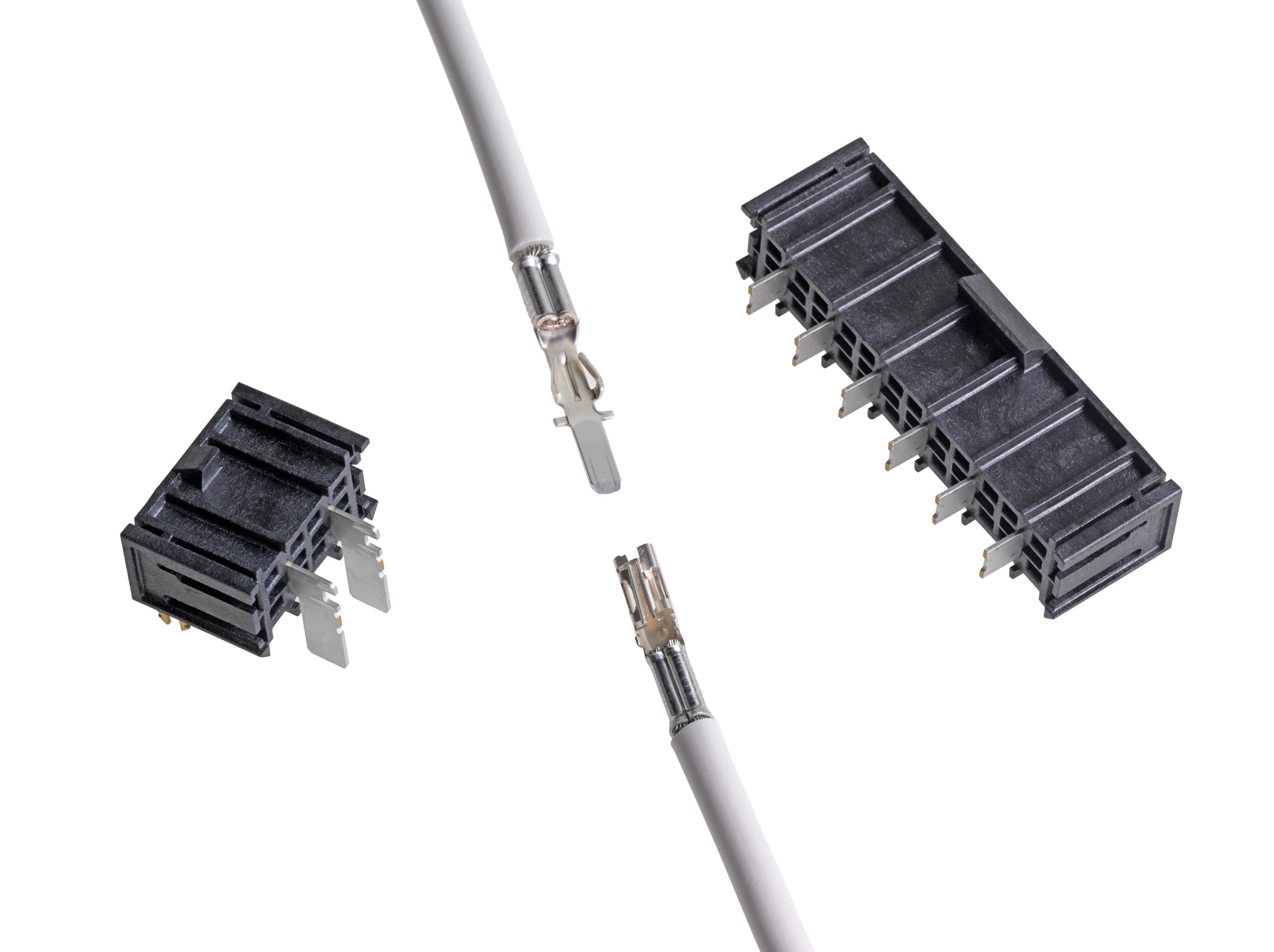 Molex Inc. has introduced the Super Sabre Power Connector System for all high-current applications where flexible wire-to-wire and wire-to-board configurations are required. Delivering 34.0 A per blade in a 7.50-mm pitch connector and withstanding up to 125°C (257°F) operating temperatures (USCAR-2, level 3), Super Sabre power connectors are well-suited to automotive and commercial vehicle applications as well as the datacom and industrial control industries. Based on proven Sabre Connector multi-beam technology and optimized for 10 to 12 AWG wires, the power connector system is compatible with lead-free wave soldering and reflow soldering processes. Silver-plated, high-conductivity alloy terminals are used to minimize fretting corrosion concerns. The flat-blade terminal design with four independent points of electrical contact offers redundant, secondary current paths for long-term performance and reliability. The company claims that the design provides a more reliable electrical connection than other terminal styles. The terminals are fully isolated on both mating sides to provide maximum protection against damage or shorting. Positive latch and Terminal Position Assurance (TPA) features prevent terminal backout.