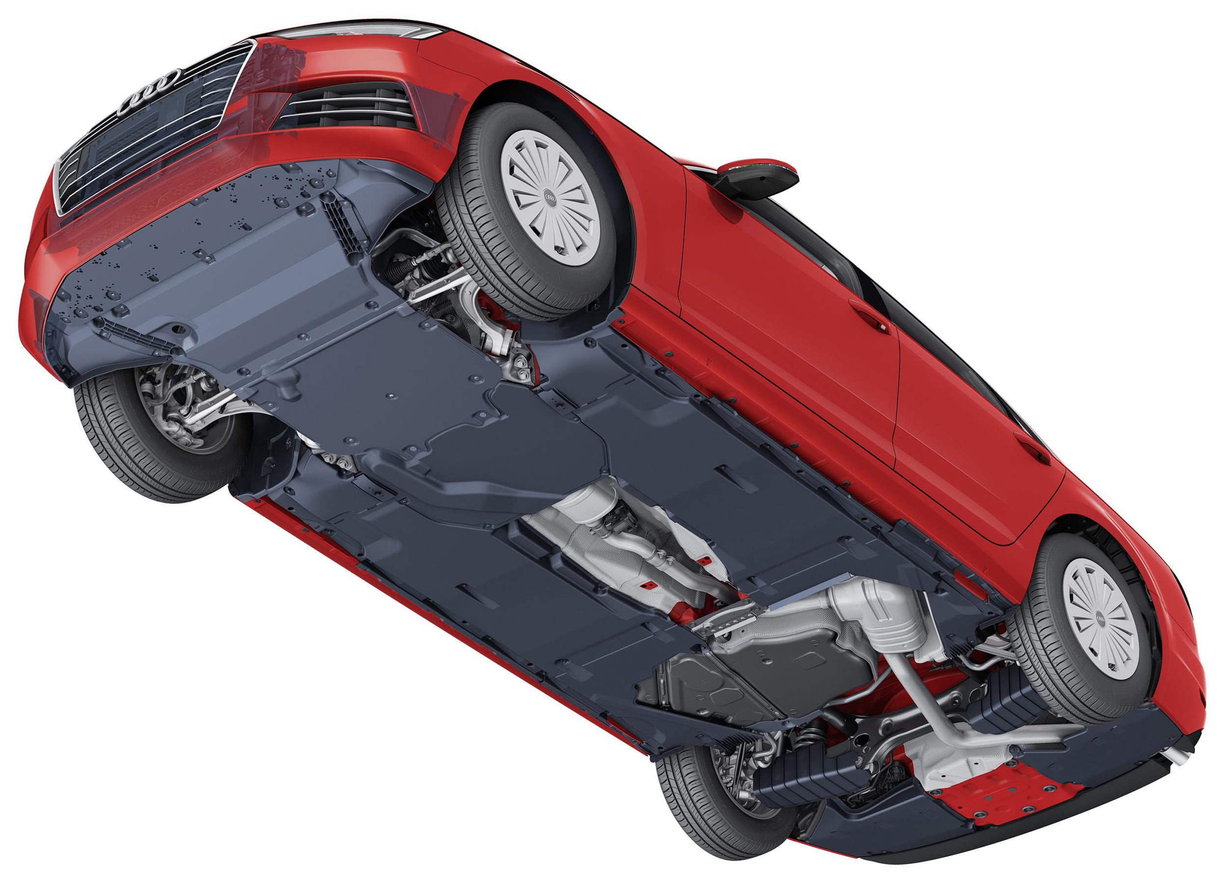 The 1.4 TFSI gasoline base sedan has a 1320-kg (2910-lb) mass empty and without driver. The car’s body is 15 kg (33 lb) lighter than its predecessor thanks to “geometrical lightweight construction and an intelligent combination of materials”—mainly aluminum and high-strength steels.