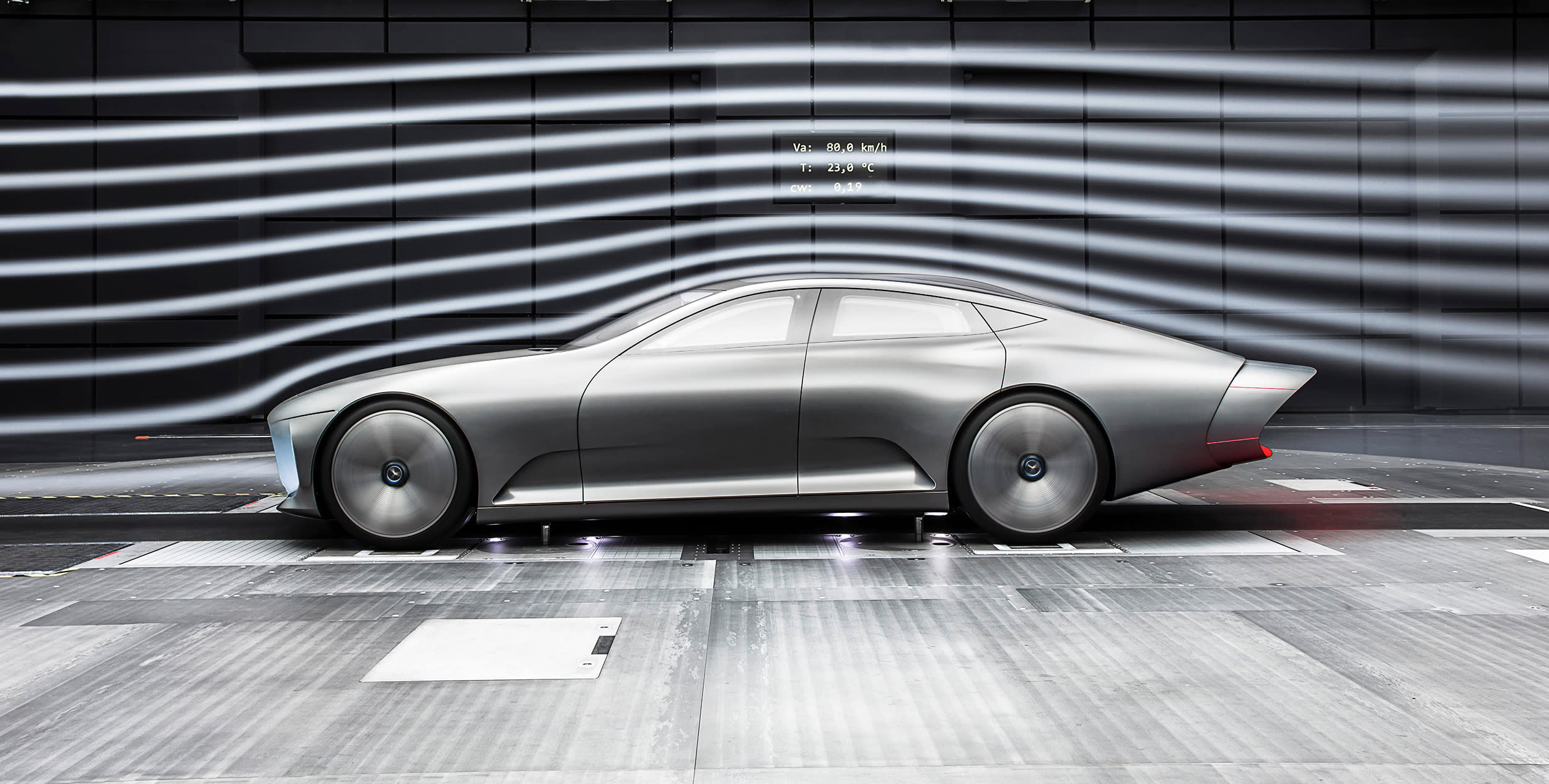 The Concept IAA is a world record-breaker for aerodynamics for a four-door four-seater, according to Mercedes, with a Cd figure of 0.19. At around 80 km/h (50 mph), the vehicle automatically switches from design mode to aerodynamic mode, changing its form with a number of active aerodynamic features.