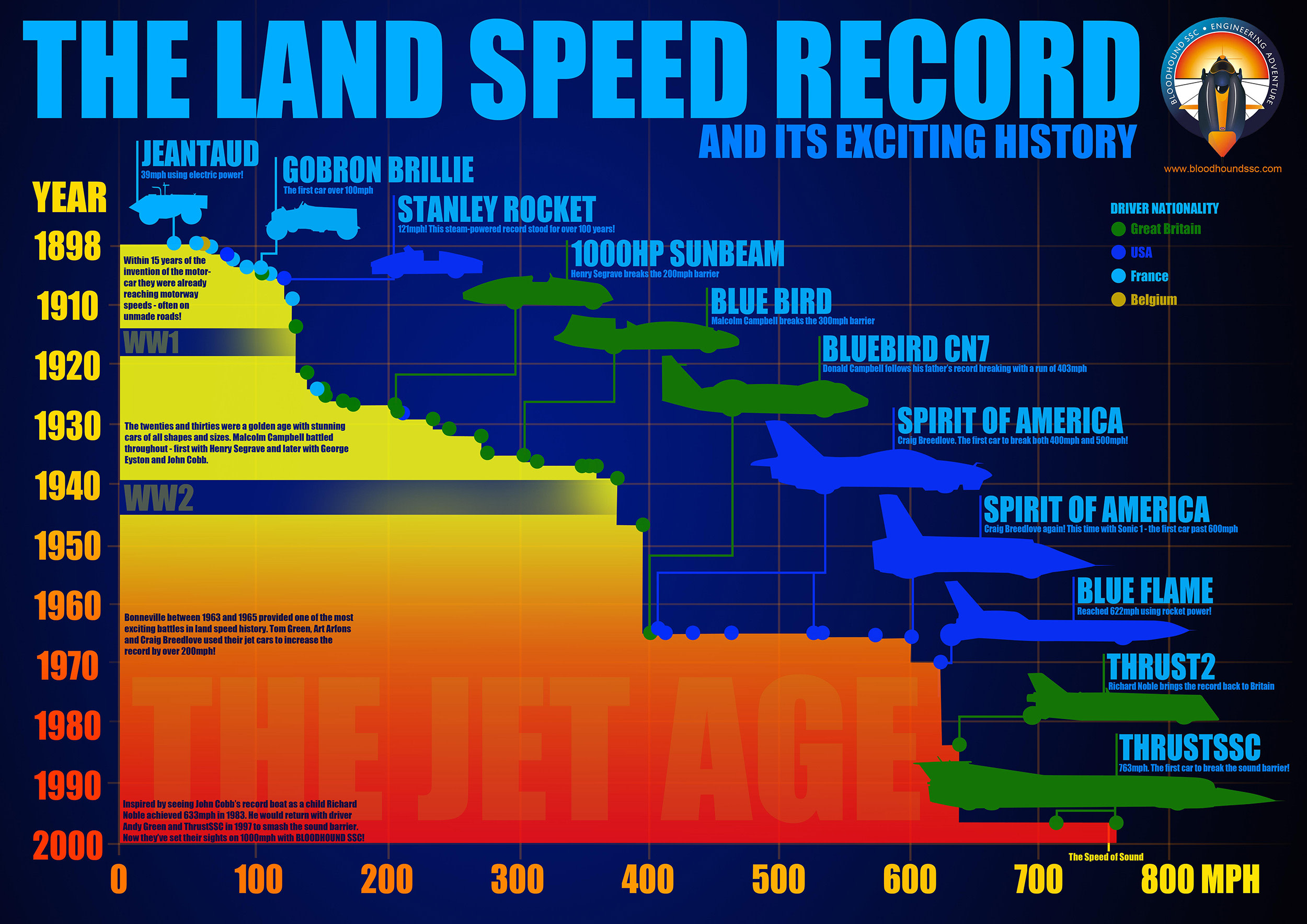 Engineering a car designed for a 0-1000 mph (1610 km/h) time of 55 seconds is one of the world’s most unlikely, most daunting, and most exciting challenges. That is the task of Mark Chapman, Chief Engineer of the U.K. supersonic Bloodhound Project and his team, now on course to attempt a new World Land Speed Record that at Mach 1.4 blends automotive and aerospace engineering technologies to achieve a spectacular target never before considered outside the realms of space fiction.