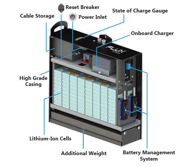 According to Flux, its LiFT Pack delivers up to 25% longer run time than lead-acid batteries with identical amp-hour ratings.