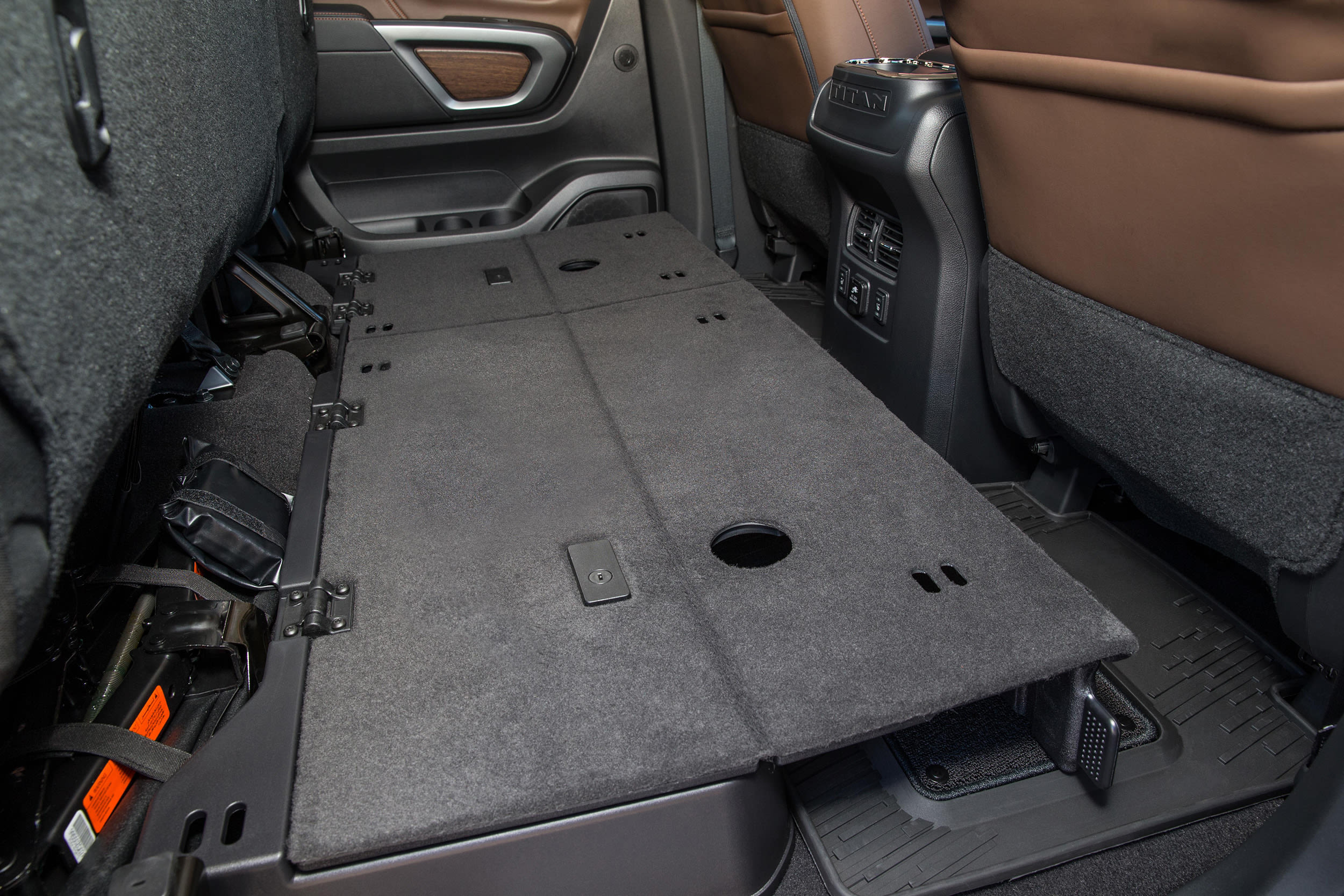 As per the first-generation Titan, power is supplied by a 5.6-L gasoline "Endurance" V8. The new VK56VD engine is rated at a claimed 390 hp (290 kW) at 5800 rpm and 394 lb·ft (534 N·m) at 4000 rpm. Its VK56DE predecessor offered 317 hp (236 kW) at 5200 rpm and 385 lb·ft (521N·m) at 3400 rpm.