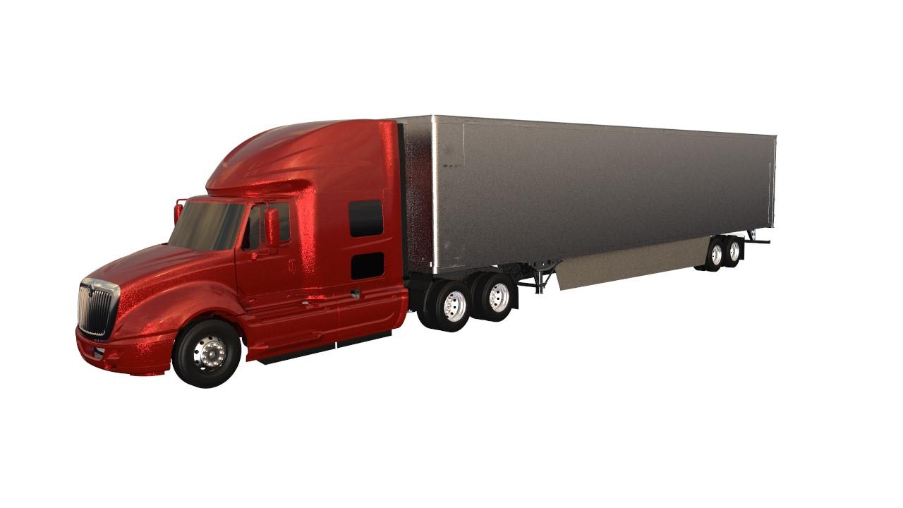 WT tests were performed on a 1/8th scale long sleeper and standard 53-ft dry-box trailer with trailer skirts in the rolling wind tunnel at the Auto Research Center (ARC). Figure 1 shows a representative WT test tractor model. The same tractor geometry was used for both the wind tunnel and CFD simulation.