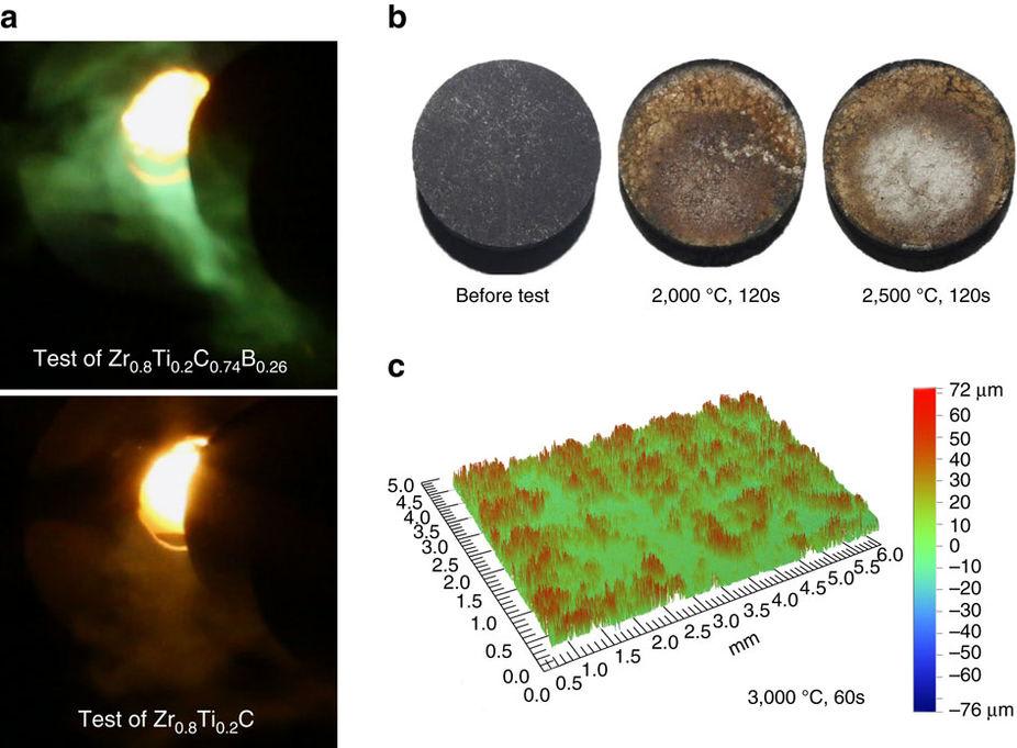 “Current candidate UHTCs for use in extreme environments are limited and it is worthwhile exploring the potential of new single-phase ceramics in terms of reduced evaporation and better oxidation resistance. In addition, it has been shown that introducing such ceramics into carbon fiber-reinforced carbon matrix composites may be an effective way of improving thermal-shock resistance,” said Ping Xiao, Professor of Materials Science, who led the study in University of Manchester.