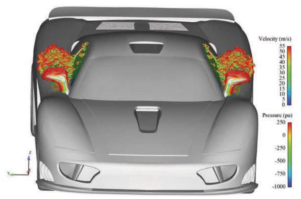 The development process itself is a coupled system of wind-tunnel testing and CFD simulations. “All major automakers today are using both simulation and wind tunnels on a daily basis for aerodynamics,” he said. Wind tunnels employ approximations just as much as with simulation — just different ones. Wind tunnels also produce results faster — once the prototypes and parts are fabricated. Simulation, on the other hand, allows testing of designs that may never be physically realized. It also allows for visualization of results simply not possible with physical data, he explained. “The two tools really complement each other.”