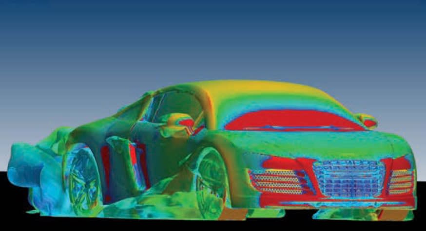 Mark Doroudian, Director of Engineering for ESI North America, believes that computing power available today has made high-fidelity CFD more practical. “For noise applications around a car, we use mesh element sizes of 1 to 2 mm near the region of interest, and these can be computed on Linux clusters for faster turnaround time,” he told Automotive Engineering. For simulating the flow structure around an entire vehicle, the mesh elements are as fine as 5 to 10 mm (0.2 to 0.4 in), resulting in models consisting of 80 million cells or more — again, easily handled with today’s computers.