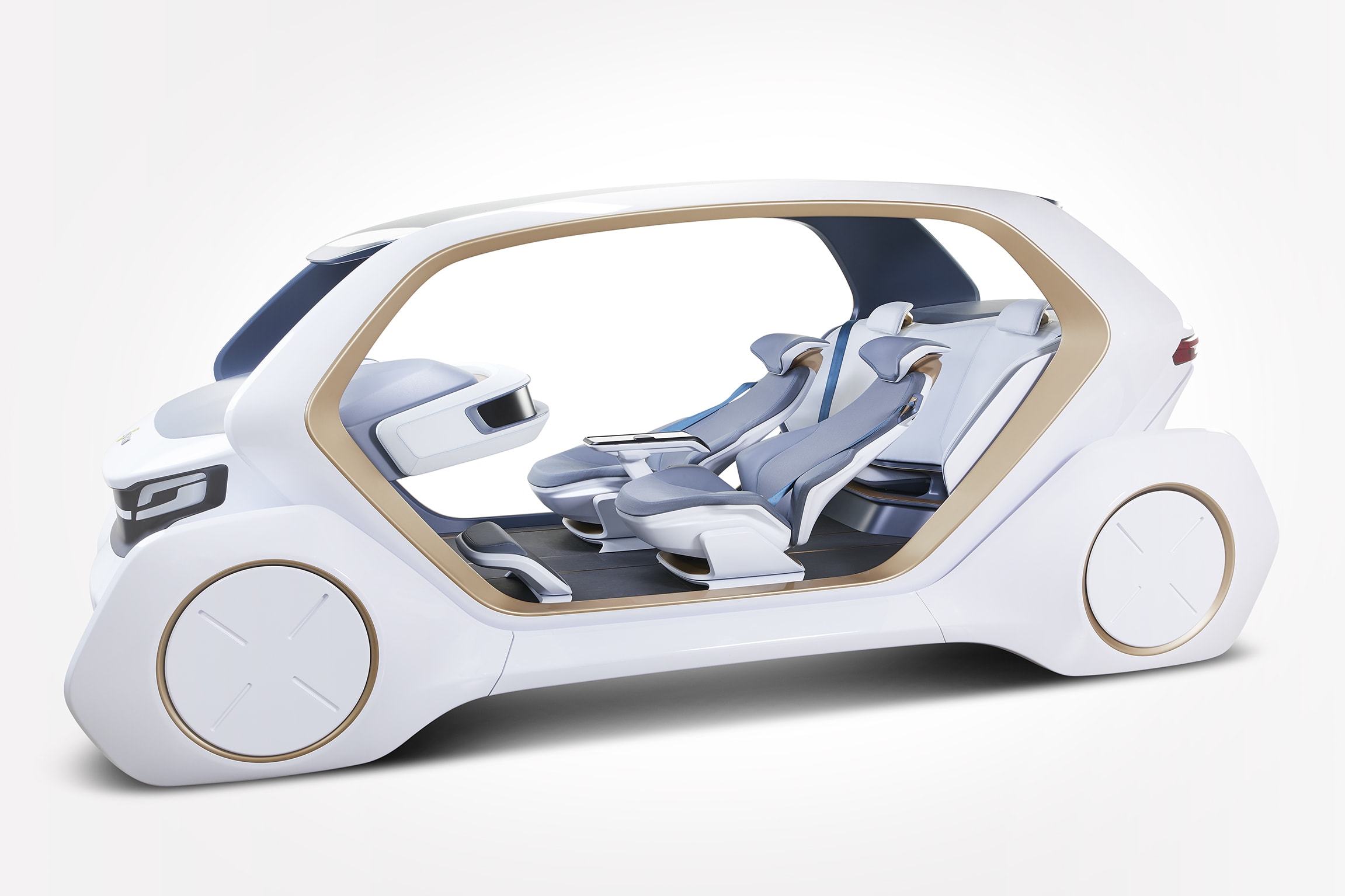 AI18’s 'family mode' is the closest to today’s conventional vehicle cabin with two forward-facing front seats and a rear bench seat. In the baby-plus mode, front seats rotate 180° so parents can engage with their children while traveling. An integrated ISOFIX restraint system attaches a child seat to the rear seat.