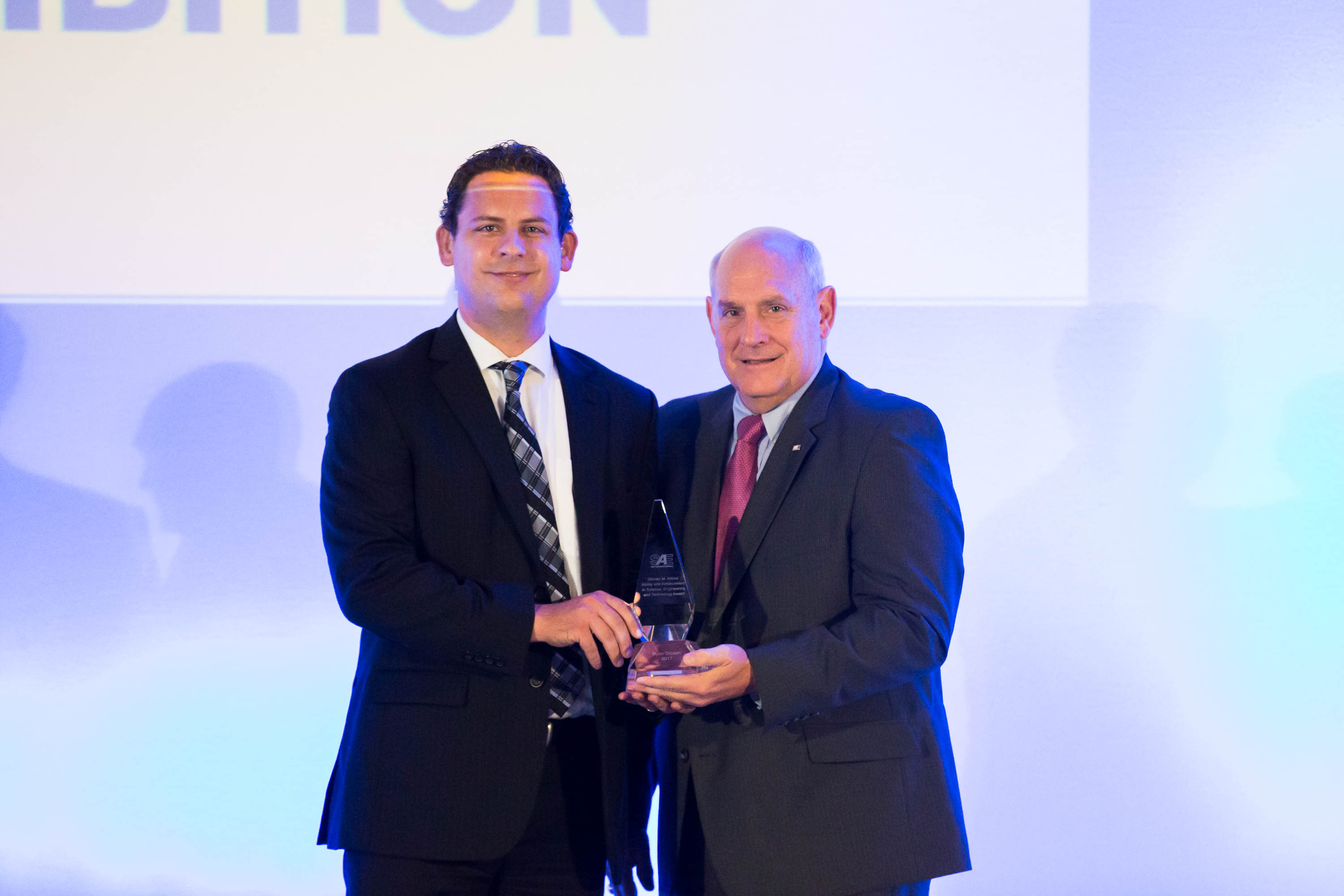 Now, Gibson can add another award to his impressive resume: The Steven M. Atkins Ability and Achievement in Science, Engineering and Technology (AASET) Award. Granted by SAE International, which, since its founding in 1905 has established and operated programs recognizing outstanding achievements in the design, engineering and production of vehicles and their components, systems and materials, this award recognizes the significant technical achievements brought about by innovation, leadership and inspiration of employees with disabilities working in the aerospace engineering industry.
