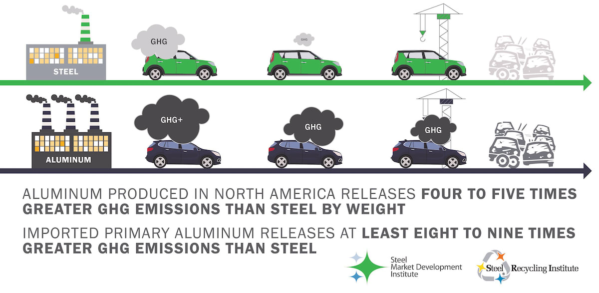 "The dramatic increase in material production emissions for vehicles that are lightweighted with aluminum instead of AHSS is never offset by emissions reduction benefits during the vehicle's useful lifetime, which is the 10-12 years that the vehicle is driven," Hall claims.