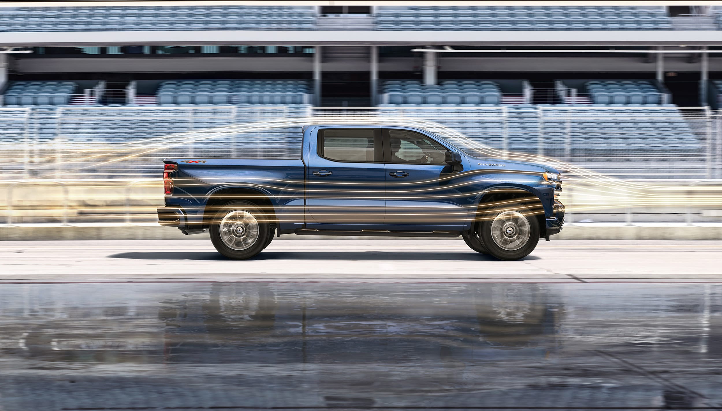 Designed into the new bodywork are aerodynamic improvements. Adaptive curtains are integrated into the Silverado’s grille to deflect air around the wheel wells during cruising. Spoilers built into the trailing edge of the roof and the top of the tailgate also contribute to a 7% reduction in aerodynamic drag.