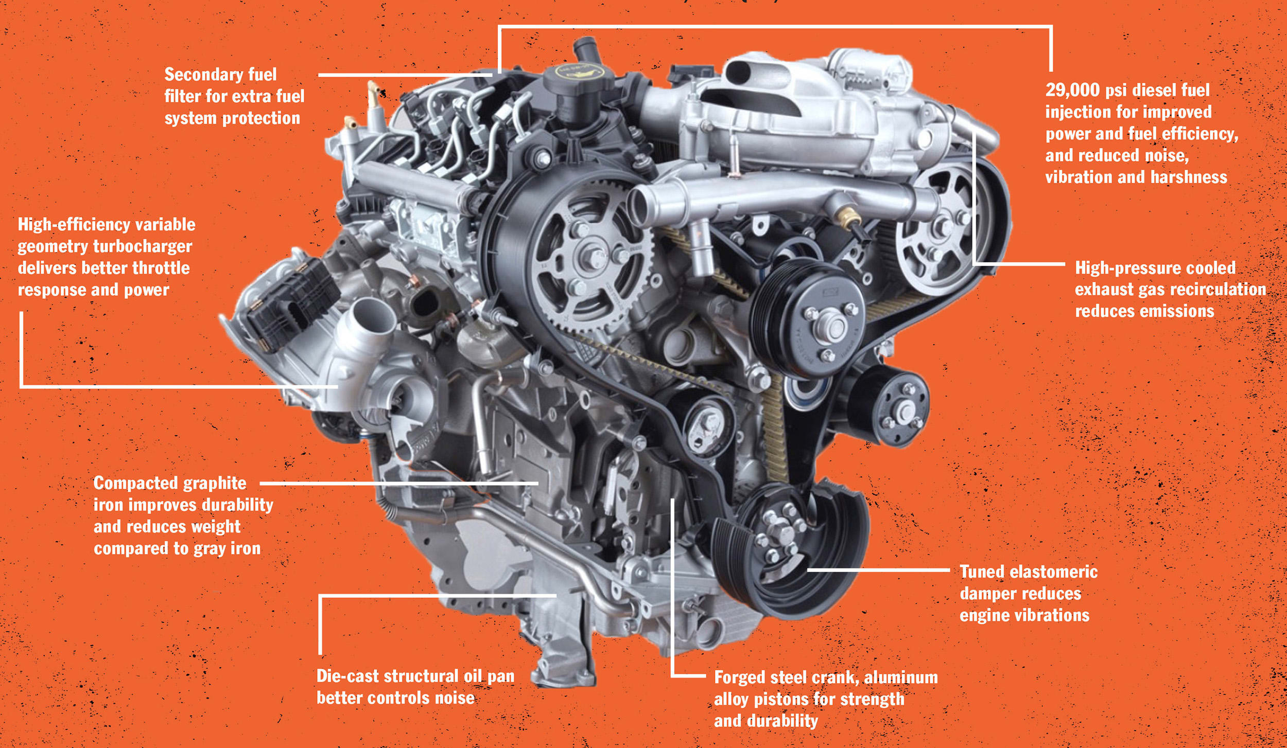 In 2015 GM invested $263 million in its Flint, MI, engine plant to tool a new 3.0-L inline six-cylinder turbodiesel for light truck applications. Destined first for the 2019 Silverado, the new diesel is claimed by GM North America President Mark Reuss to outperform its Ford and Ram counterparts. While GM has yet to announce further 3.0-L details beyond stop-start (itself a first for Silverado), a CGI block with aluminum DOHC head, variable-geometry turbo and cooled EGR are likely technology candidates for durability, mass efficiency and emissions performance.