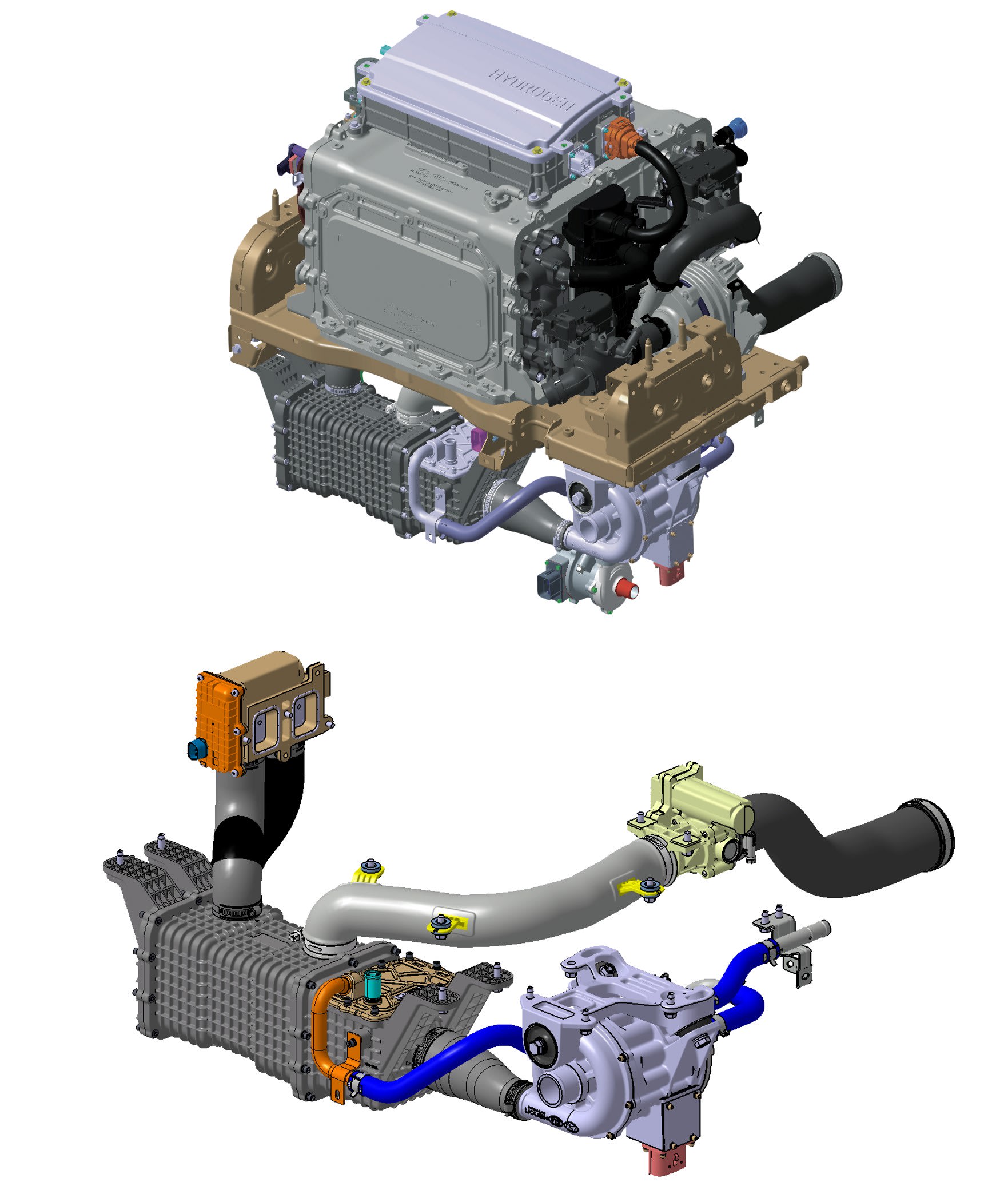 A new thermal management system means improved response time to control the coolant temperature of the stack thanks to a two-way and a four-way valve. The four-way valve is a world's first for electric vehicles, Yoon said, and it improves the Nexo's cold-start ability. Cold starts are traditionally difficult for fuel cell vehicles, but the Nexo can start at ambient temperatures of -30°C (-22 F), the same threshold the company's ICE vehicles must pass.