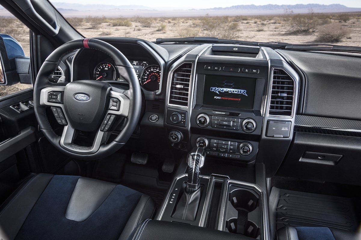 The 2019 F-150 Raptor is powered by a High-Output 3.5L V6 EcoBoost engine (exclusive to Raptor) mated with a 10-speed automatic transmission. The truck goes on sale in late 2018.