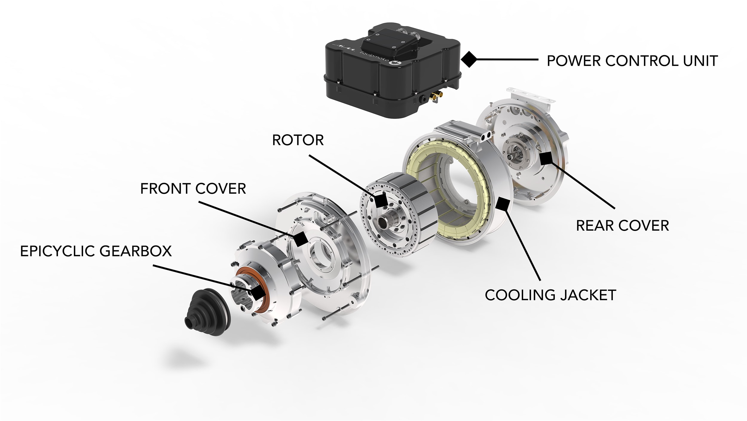 Equipmake’s spoke motor benefits from using aluminum for the hub with steel laminations because the material’s properties, notably fatigue and life, are known and able to provide the design life requirements.