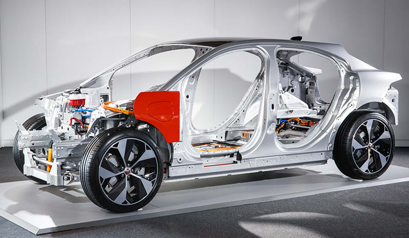 The extra stiffness in comparison to Jaguar’s other aluminum-intensive models is courtesy of the extremely stiff battery pack installed in the I-Pace’s floor, he said. Without it, the I-Pace would be comparable to other Jaguar models in terms of chassis rigidity, Patel said.