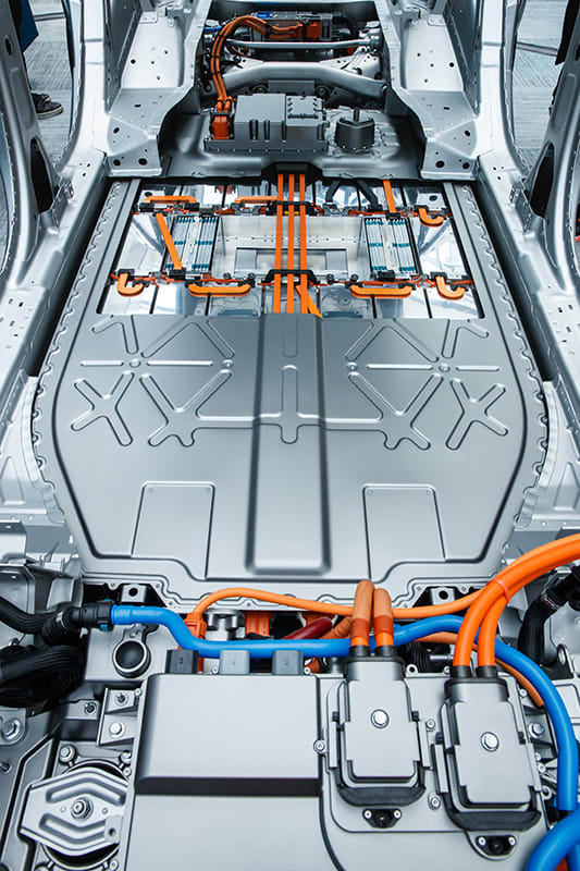 The prismatic-cell form factor and the modules’ construction permit maximum energy density for the smallest possible battery pack, with optimum thermal management, Patel said. Cooling passages beneath the pack circulate conventional ethylene glycol/water coolant to keep temperatures in the cells’ operating range.