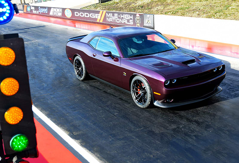 Straight-line track fans distraught over the Demon’s passing should consider the new Challenger R/T Scat Pack 1320 (bottom), which FCA announced in July prior to the NHRA Mile-High NHRA Nationals in Denver. Named for the quarter-mile distance of 1,320 feet, the new model is powered by a 6.4-liter V8 producing 485 hp and 475 lb·ft (644 N·m) and is mated solely to the 8HP70 8-speed automatic. This new street-legal Challenger model is non-widebody only and also snags some of the Demon’s drag-strip tech.
