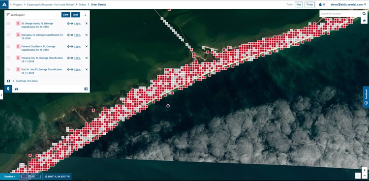 As the third strongest storm in the U.S. was striking the East Coast, Airbus Aerial technology was providing around-the-clock support analyzing the impact and aftermath of Hurricane Michael. Airbus Aerial uses a unique combination of satellites, manned aircraft and rotorcraft, and unmanned aircraft systems ( UAS ) together with data analytics technology and an artificial intelligence ( AI ), or machine learning, platform to help organizations supporting recovery efforts better understand and react to the storm as it rolled across the southeastern U.S. into the Gulf of Mexico.