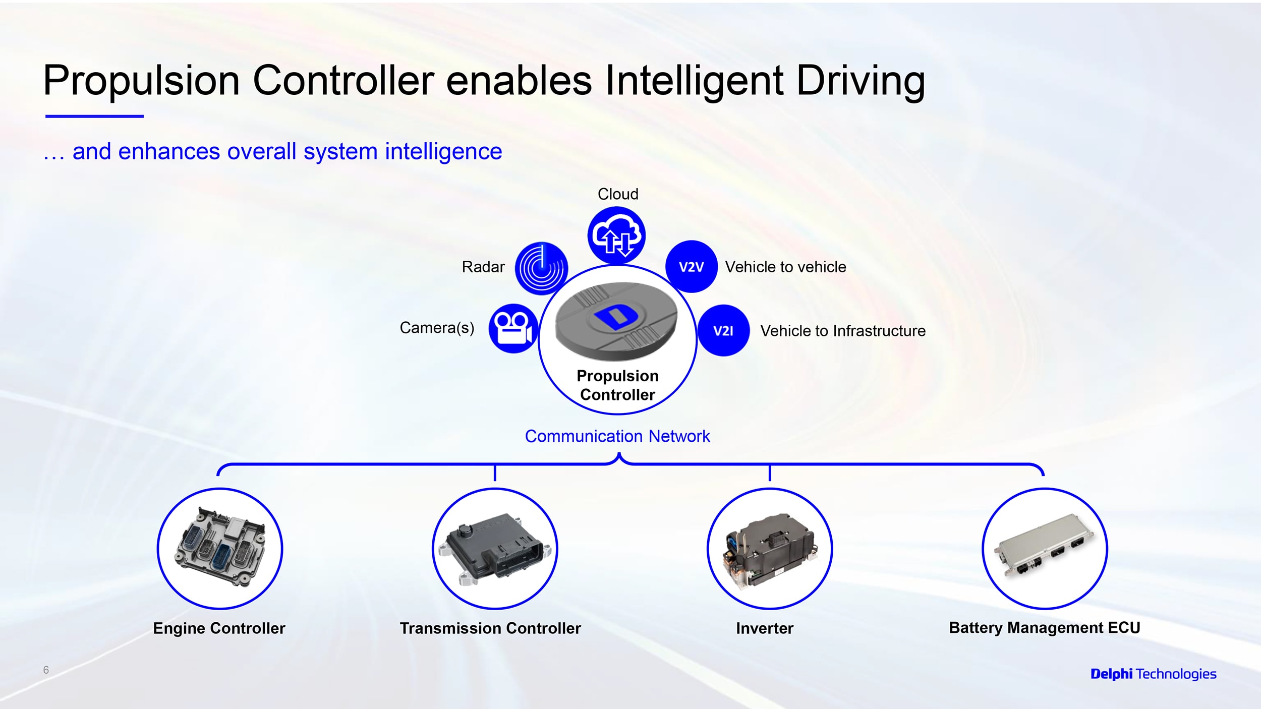 The propulsion controller is the vehicle’s link to the outside world, also taking in data from “vision” sensors such as cameras, radar and lidar and, crucially, communicating with the vehicle-to-infrastructure (V2I) and vehicle-to-vehicle (V2V) networks and cloud-information systems currently being built out to serve autonomous vehicles. This information is vital to helping the propulsion controller understand what’s ahead: maybe a traffic light ready to turn red, perhaps a long line of stopped vehicles just around the next curve.