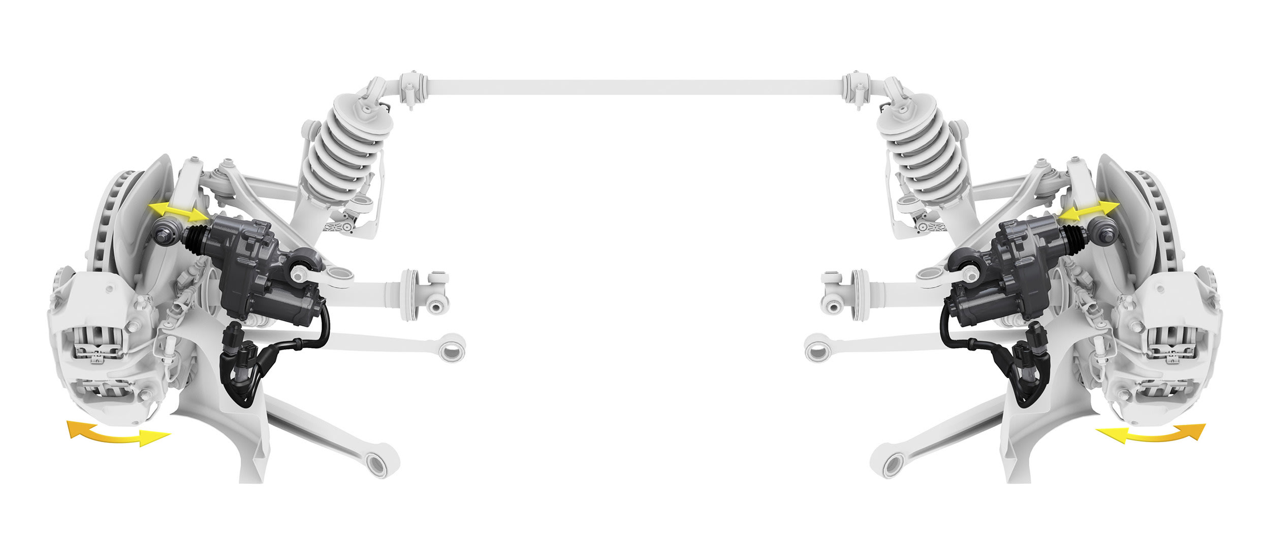Equally exciting, though, are the expanding possibilities for rear-wheel steering as used by Vision Zero, but already in production today for the Porsche 911, Cadillac CT6 and other current-production vehicles. Active Kinematics Control (AKC) as ZF calls it, was fitted to a wild-child demonstrator vehicle that enabled, with the twirl of a dial, any proportion of front and rear steering. The vehicle could virtually “crab” sideways, for example, into a tight parking spot, while high levels of rear-steer also impart incredible agility in completing a slalom course.