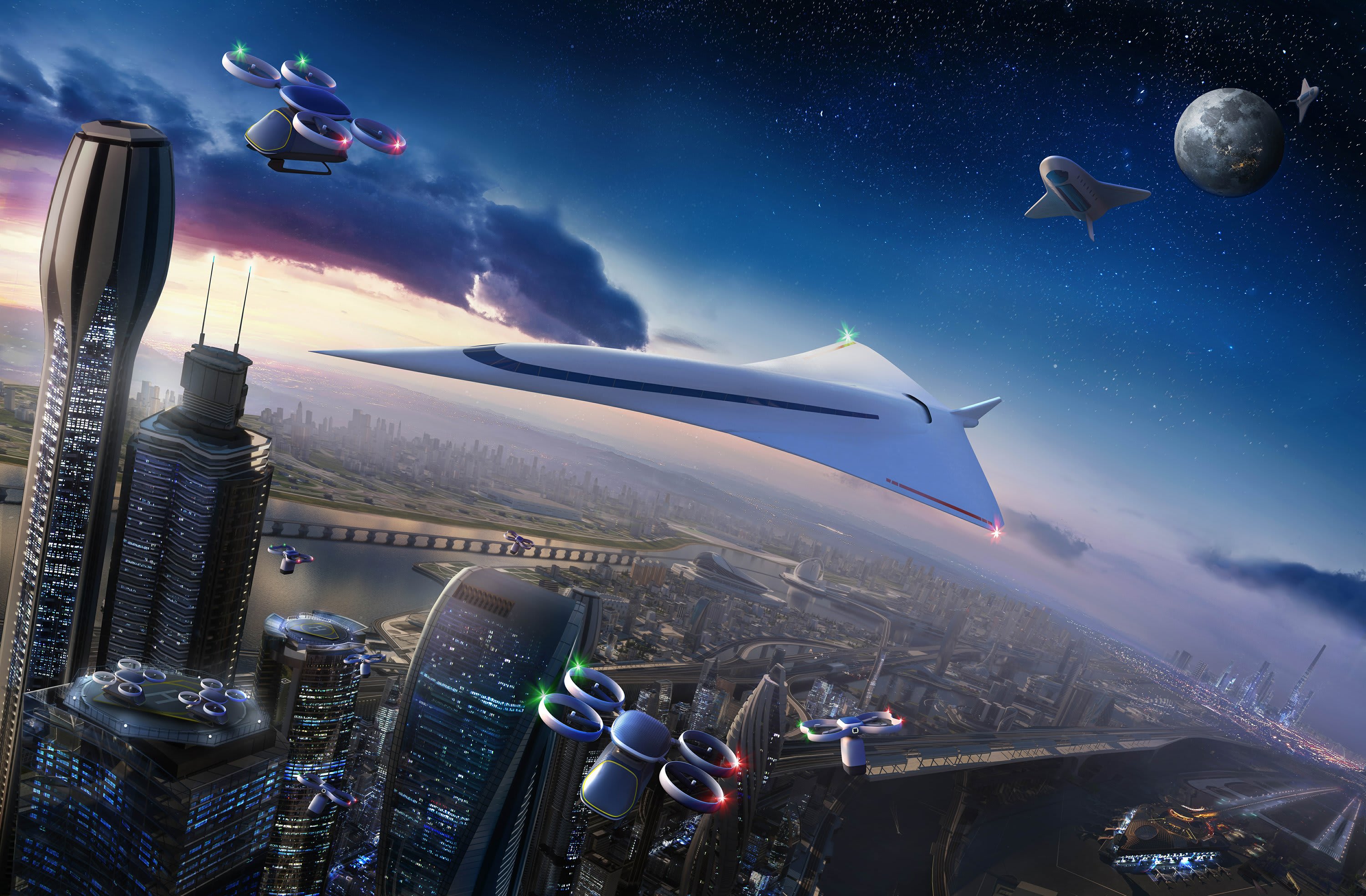 AIA Predicts Flying Air Taxis, Supersonic Air Travel, and Space Industry for 2050
