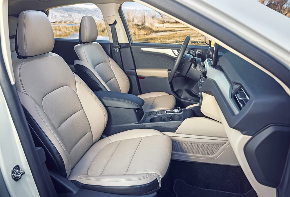 The fourth-generation of Ford’s PowerSplit electronic CVT transmission sees the power electronics integrated, creating a more compact combo that’s cooled along with the transmission, and the new e-CVT is claimed to boost 45-65 mph times by 20%. Both the regular hybrid and 1.5-L EcoBoost version of the 2020 Escape will offer Ford’s part-time AWD system (now with an AWD-disconnect function). The plug-in hybrid version is FWD only, and AWD is standard with the 2.0-L EcoBoost.