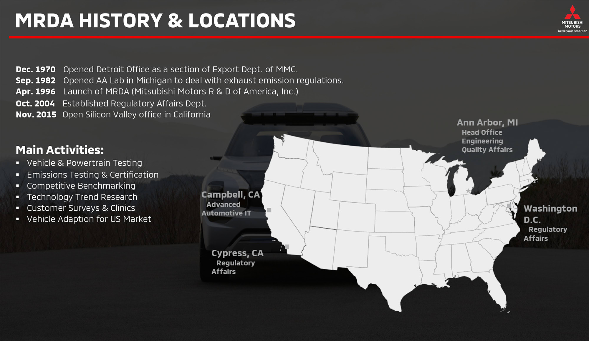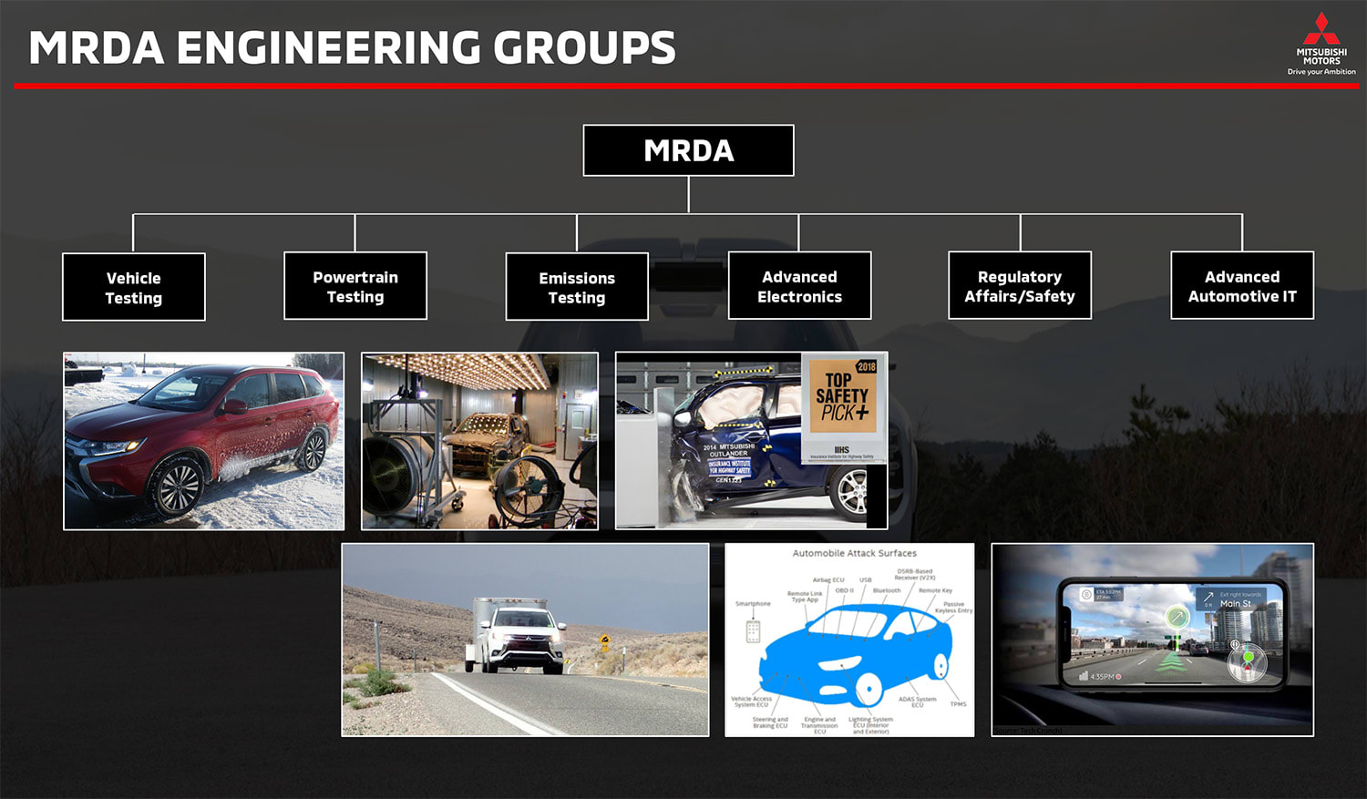 Making its global debut at the Geneva show in March, the 2020 Outlander Sport is Mitsubishi’s best-selling vehicle in the U.S. (39K in 2018). The new ‘Sport (top) was on display for media recently at Mitsubishi Motors R&D of America (MRDA) head office in Ann Arbor, Michigan. MRDA serves a number of roles including vehicle adaptation and certification for the North American market, technical-trend research including cybersecurity testing, and managing customer market surveys (see the MRDA history and org chart in the image gallery).