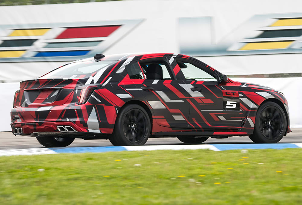 Though an apparent shift from the original track-ready V-Series ethos, the company hinted at upcoming V-Series models that will provide elevated, closed-course performance. True to its word, two days after the new V-Series sedan were revealed, two prototypes took to the track at the Detroit Grand Prix on Belle Isle. Beyond the “CT4” and “CT5” labels integrated into the camouflage and several images (see gallery, and below), Cadillac provided no additional details on the prototypes.