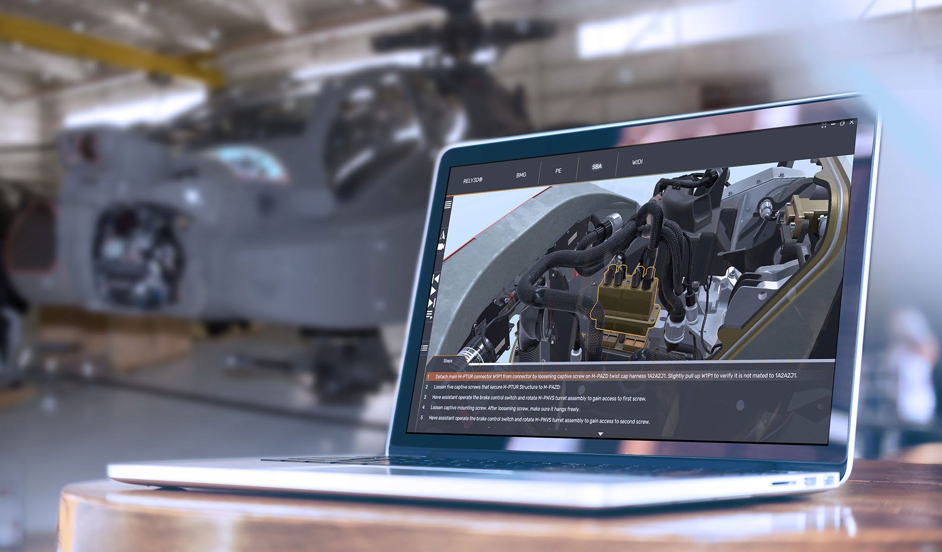 Maintainers access the platform by bringing up high-fidelity, technically accurate 3D models of both the Apache M-TADS/PNVS and LONGBOW Fire Control Radar (FCR) on maintainers’ mobile tablets or laptops.